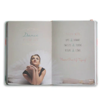 The Dancer’s Journal is a wonderful tool for dancers, creating a unique way to record goals and achievements in and out of the studio. Stunning imagery and quotes inspire and motivate whilst the knowledge rich pages keep you informed with dance terminology and important dates. A special place to keep important notes, jot down ideas or scrapbook your favourite images along with an expandable pouch for all your bits and pieces. This beautifully bound journal has a water resistant cover with a vertical elastic closure which can also mark your page.Â
