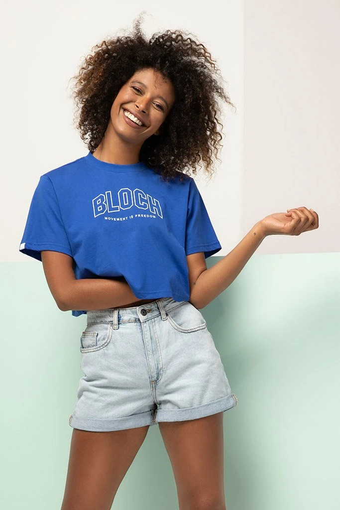 A versatile cropped tee is a must-have this season, with an ideal length that allows for easy pairing with your favourite high-waisted legging. Boasting our bold, heritage Bloch logo and slogan ‘Movement is Freedom’. Crafted in a mid-weight 100% cotton for ultimate comfort and breathability.