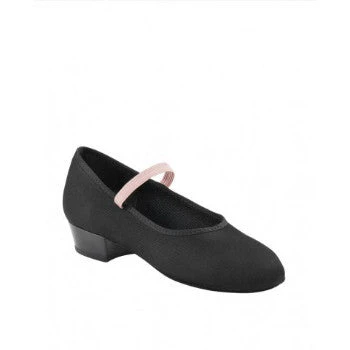 The Capezio Academy Character shoe is suitable for character training, ballet examinations and an introductory shoe to ballroom. Featuring a canvas upper with a suede sole, pre-attached elastic with snap closure, and a contoured low 1″ heel height.