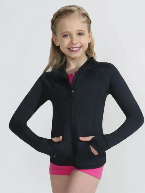 This zip-front Team Spirit Jacket is a staple for anyone with an active lifestyle. Layer it over your leotard to and from rehearsals or simply wear over your regular street clothes. Features thumbholes, pockets and a high funnel neck for added warmth and protection. Discreetly placed Capezio logo on the back adds an exclusive touch. Bonus factor: this jacket can be embroidered to pay tribute to your favourite dance team.