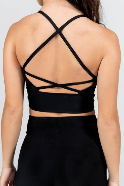 The perfect everyday cropped singlet shape. Longer in length with a very wide hemband that is soft and comfortable, hugging in all the right places. With an open back and multi-criss-cross straps plus a full front lining to keep you covered and supported. Sylvia P branded logo featured on the back of the garment. Made from our SP Activate fabrication which is quick drying, breathable and moisture wicking with a 4-way stretch and firm hold.