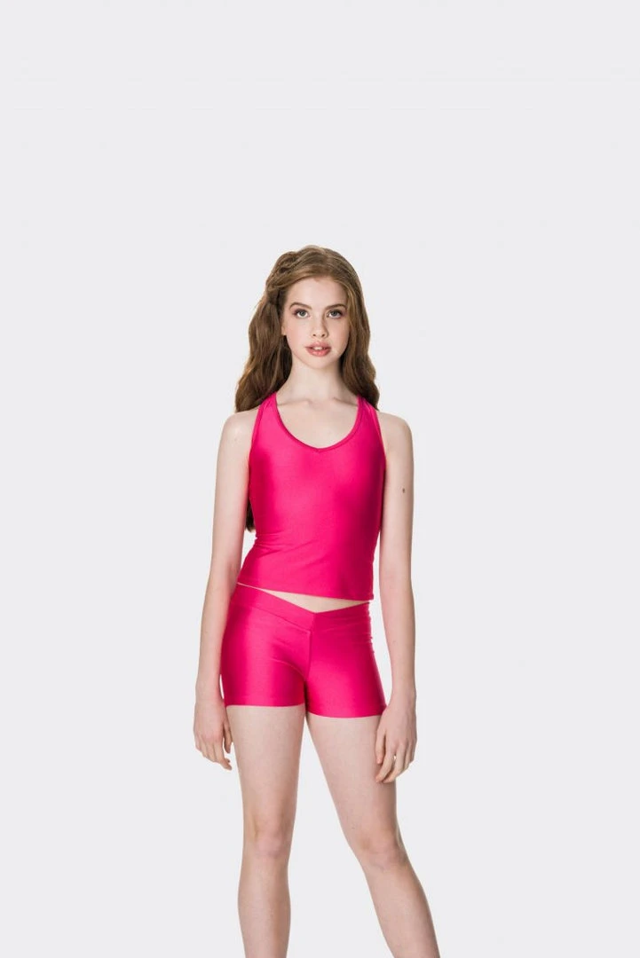 The T-Back Singlet Top is a comfortable dance top with a v-neck, t-back, and is fantastic for class and costumes.