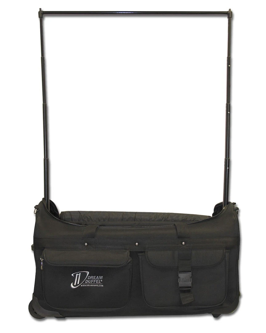 Are you looking for the ULTIMATE dance bag for dance competitions? You’ve found it! The Dancer’s Dream Duffel. Our rolling dance bag is an essential addition to any dance competition — with everything from a Patent Pending one-touch telescoping costume rack, garment bag and accessory box, to a folding stool! You get smart, convenient storage and a handy competition garment rack all in one.