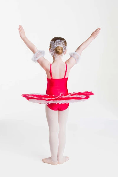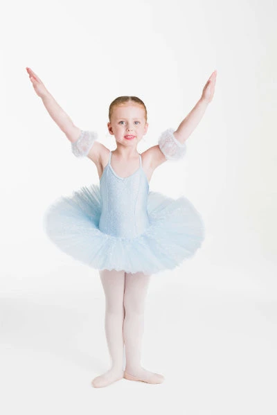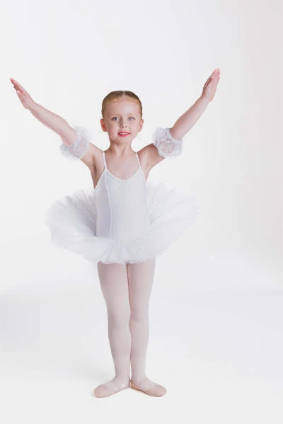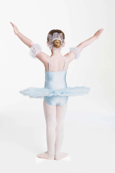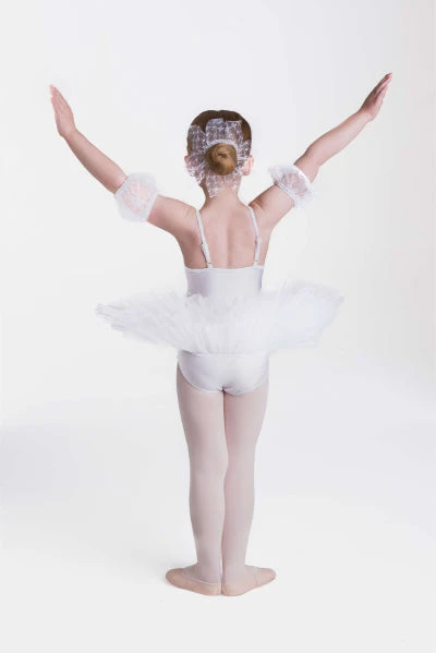 Hair accessory and arm puffs included.