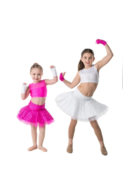 The Skater Skirt is a wildly, fun eye-catching design. The skirt is built onto matching briefs with two layers of tulle to keep it bouncy.