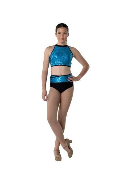 The Bright Lights Two Toned Briefs are fun, eye catching costume briefs in black with a bright sequinned contrast waistband and faux wrap design.