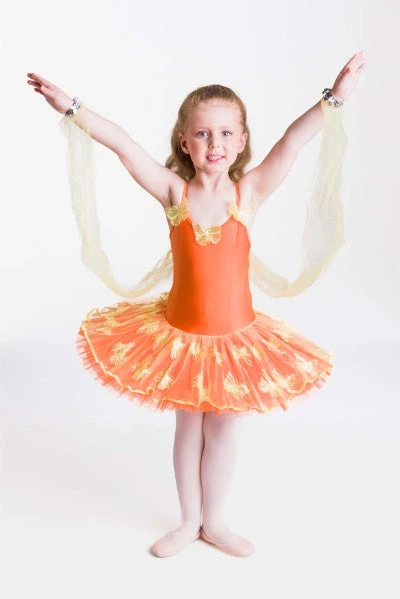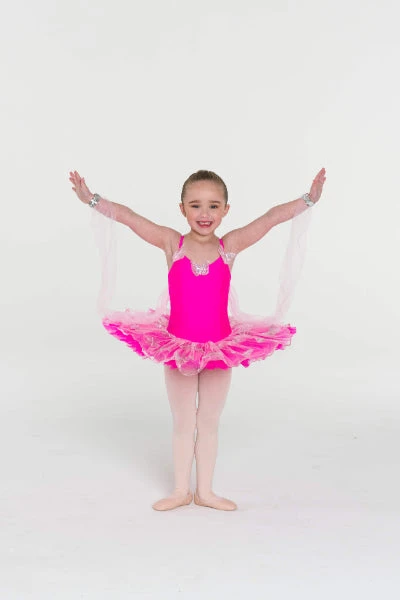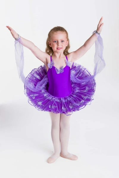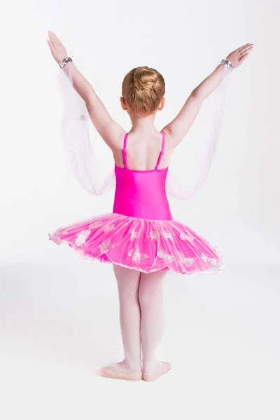 Butterfly lace detailing, overlay and wings. Four layers of tulle, adjustable straps.
