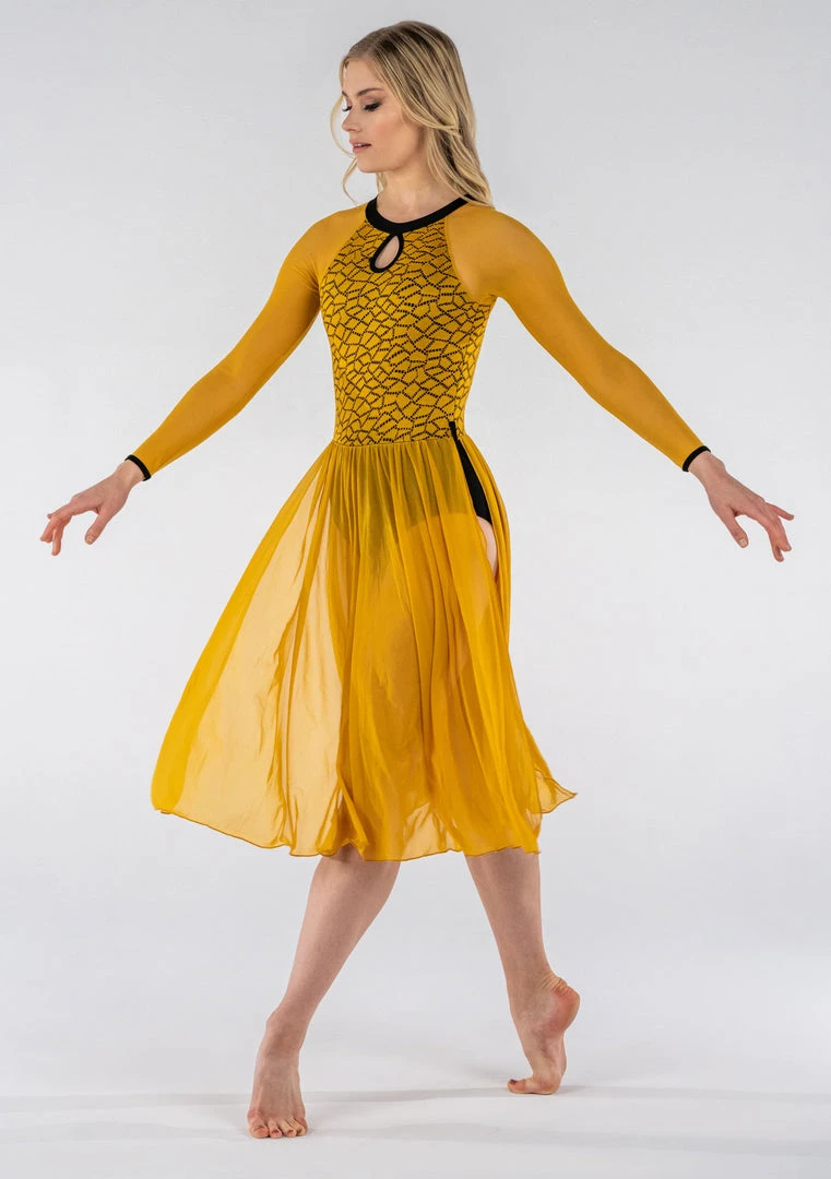 A unique and adaptable lyrical costume with detailed lace design.