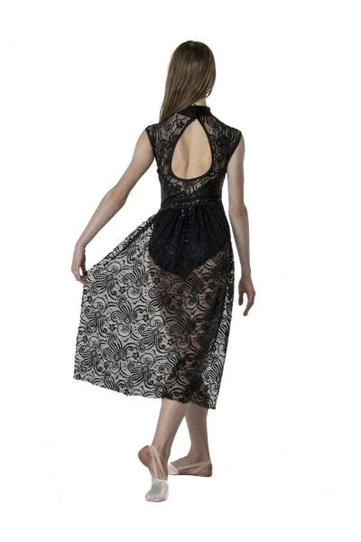 High necked lace design, with sequinned bodice, this leotard is a show stopper on its own, or can be accessorised for a number of different looks.