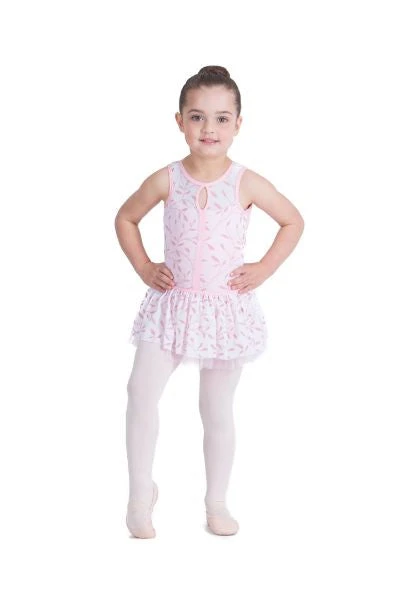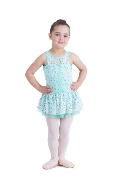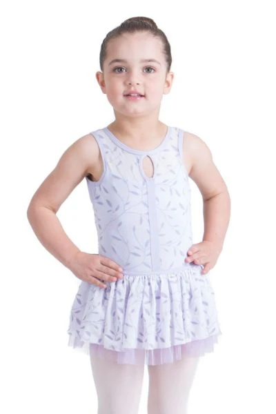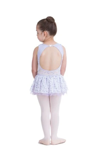 The Emily Dress is a sweet ballet dress in mesh with a velvet leaf overlay, tulle overlay and open back. Perfect for your little ballerina!