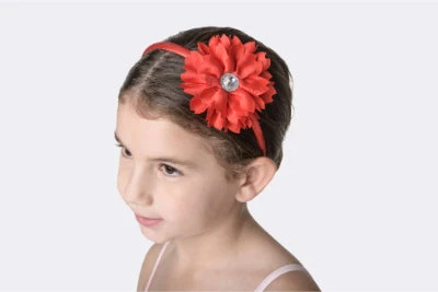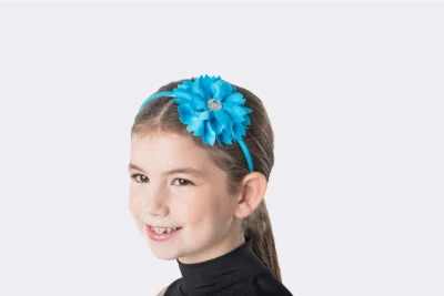 Pretty headband with flower and sparkly jewel centre, available in 16 different colours.
