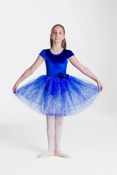Our Imperial Dress is a unique take on the traditional romantic tutu. Featuring a rich velvet cap sleeve bodice and a soft tulle skirt, this dress is sure to transform any dancer who wears it.