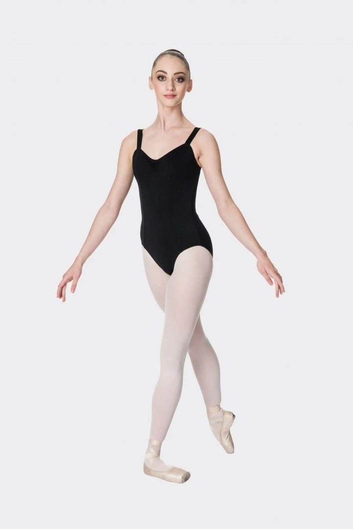 Beautifully supportive ballet leotard with gathered front and back, and princess lines. A must have item for dance class, this leotard is made from TACTEL, and is lined.