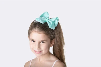 Gorgeous large coloured bow with white spotty mesh overlay, on clip.