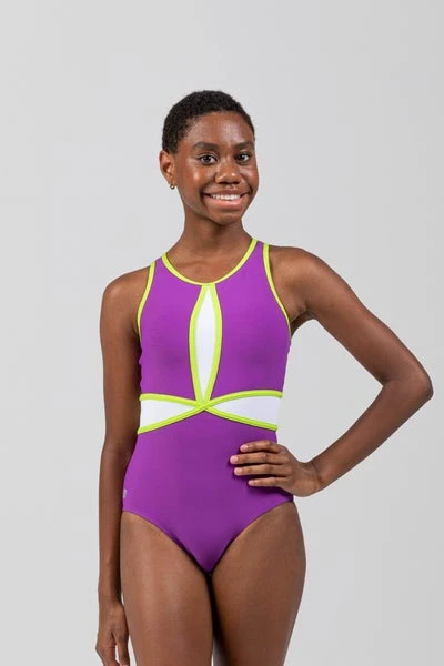 Get ready to feel bright and bold in this intricate style. Designed in a flattering shade of mulberry with a hyper lime contrast for that extra squeeze of zest. The round neckline is flattering with mesh panelling, wider shoulders and strappy back that is comfortable. We added a full front lining with elasticated legs for more coverage and comfort. Made from our signature SP Activate fabric that is quick drying, 4-way stretch, durable and made to move with you.