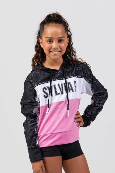 The slouchy hoodie your dreams are made of. Designed in a relaxed fit style with an oversized hood with stretchy drawcord, feature mesh plus a plush velvet fabric panel on the bottom. Talk about textures! This style features large Sylvia P branded logo on the front, plus Sylvia P branded elastic through the sleeves and body for that true athletic feeling. Made from a combination of SP Activate, mesh and and velvet.