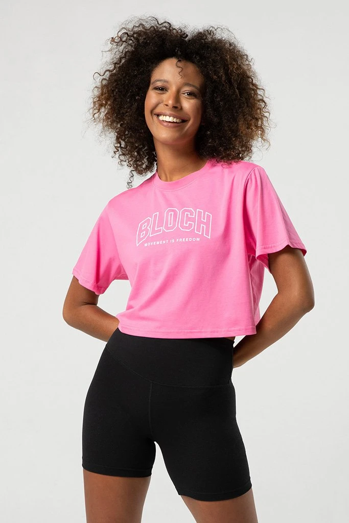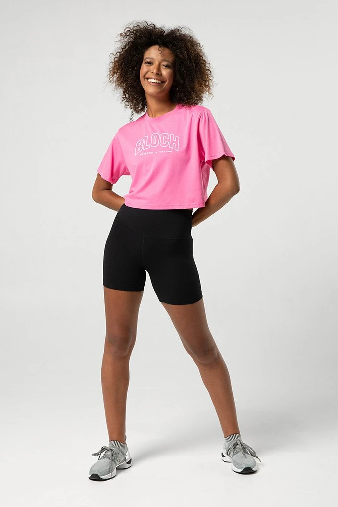 A versatile cropped tee is a must-have this season, with an ideal length that allows for easy pairing with your favourite high-waisted legging. Boasting our bold, heritage Bloch logo and slogan ‘Movement is Freedom’. Crafted in a mid-weight 100% cotton for ultimate comfort and breathability.