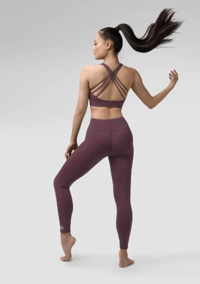 Nylon/Spandex. Full length legging with high waisted double layer band, and flat seams.